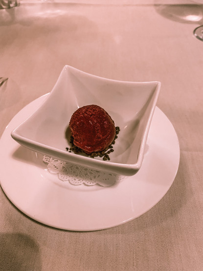 Möchtest du im "Grand Restaurant" zu Abend essen, mach dich auf ein wahres Spektakel gefasst! Ob Fleischesser oder Vegetarier, beim Gastgeber "Sergio Ciccarone", ausgezeichnet als "Maître d’Hotel" des Jahres 2015, wird jeder verwöhnt. Jedoch aufgepasst! Im Restaurant gibt es am Abend einen Dresscode: Elegante Garderobe, Jackett für die Herren und Hunde sind nicht gestattet. Wir wussten das nicht und somit hatte René doch prompt kein Jackett dabei. Machte jedoch nichts. Der "Chef de Service" hat uns eines zum Ausleihen gegeben, welches wie angegossen gepasst hat. Dies lässt uns vermuten, dass die Jacketts in sämtlichen Grössen, Längen und Breiten zur Verfügung stehen! =)