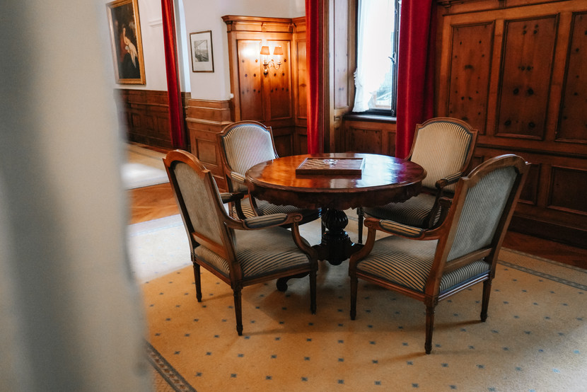 Willkommen im ältesten Hotel von Pontresina, dem Grand Hotel Kronenhof, welches 1848 errichtet wurde. Das Hotel wird auch die "Grande Dame" genannt und sie macht ihrem Namen alle Ehre. Mit dem Krönchen auf der Spitze des Dachs kommt das Gebäude sehr elegant und gepflegt daher. Dank der vielen Blumenarrangements und den schönen Details im Eingangsbereich, erhältst du bereits bei der Einfahrt einen unglaublichen Eindruck. Da das Hotel in den Hang gebaut ist, befinden sich die Rezeption und der Eingang im dritten Stock. Dies war sehr gewöhnungsbedürftig und da unse Suite im zweiten Stock war, passierte es uns nicht selten, dass wir ausversehen im vierten Stock landeten. =)